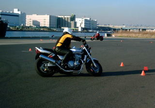 前回コケた時もそうだが、こうしたちょっと大きめ旋回が苦手。アクセル開けたいのに開けられないで半端にモタモタしてしまう。しかもより、半径を小さくしようとバンクさせるとステップガリガリになってしまう。