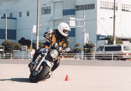 1:鋭く突っ込もうとして自然に前傾のハングオンしている。(つもり)