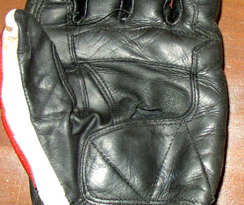 また手袋の内側、補強してある部分との境目から破れてきた。