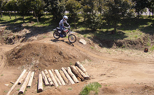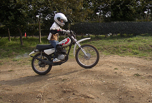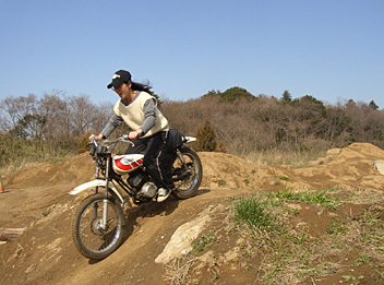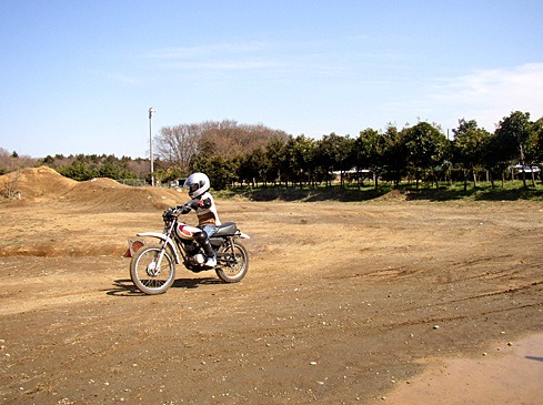 シフトとクラッチとのタイミングが判らないようで、ブワ〜ン!とやってしまって(ギア抜け)失速した時は「コケたな!!」と思いましたが、慌てて1速に叩き込んで難を逃れたようです!?