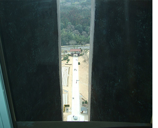 その数6千枚だそうで、線路が外気温による金属収縮・膨張に耐えて機能する隙間(ガタン♪ガタン♪って音がする隙間)を設定するのと同じで、4千トンの主軸が歪まないように計算した結果だそうだ。