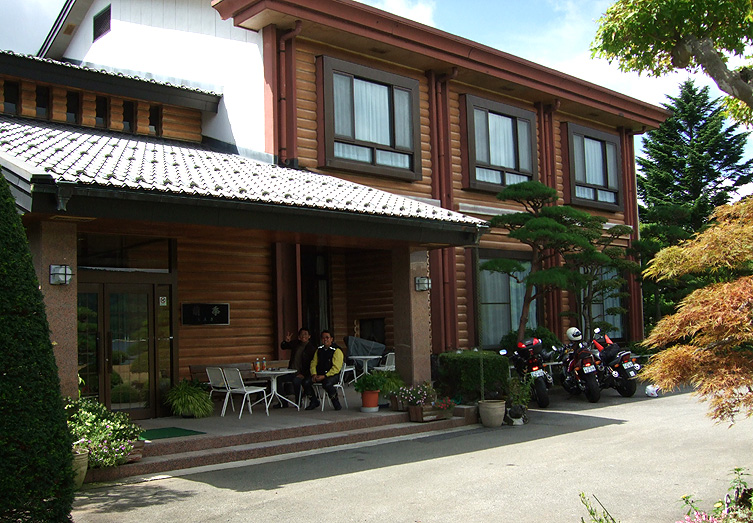 山中湖ICで降りて給油後すぐに今日の宿泊先のお泊り処 萌季に到着。