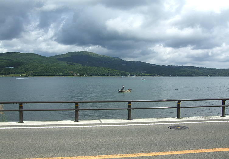 山中湖は一周13.6kmの”まりも通り”という周遊路があり、ジョギング(陸上)やテニスの避暑地だからその辺は抜かりがないようです。