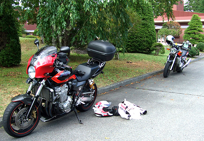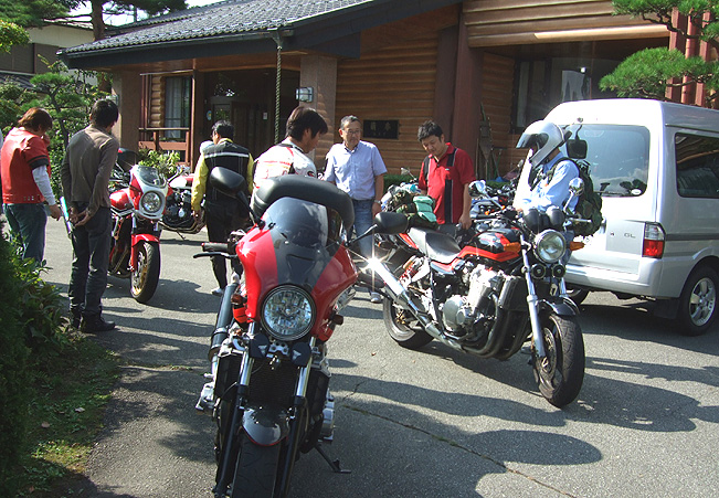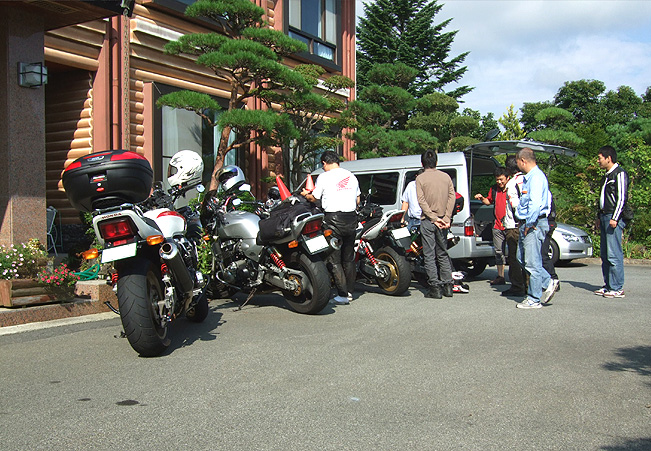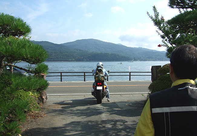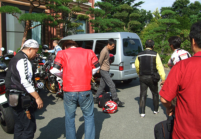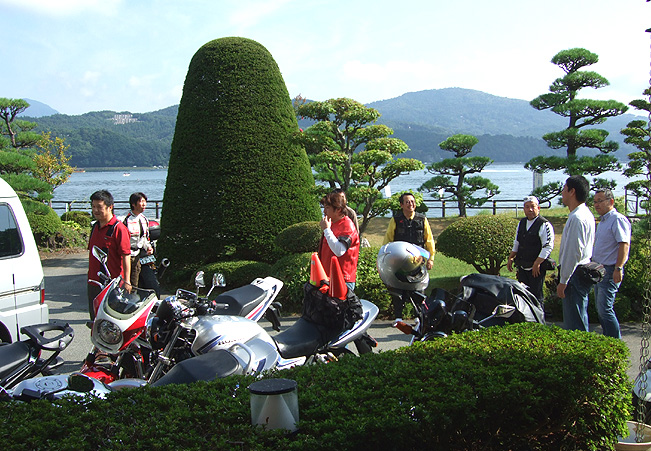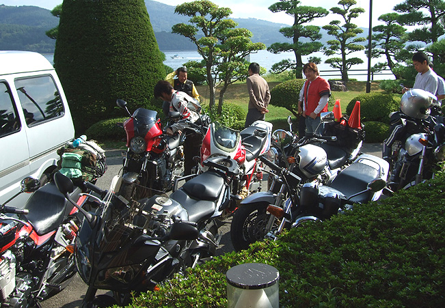 ホテルマウント富士の駐車場あたりでバイクを並べて記念撮影でもしようと、