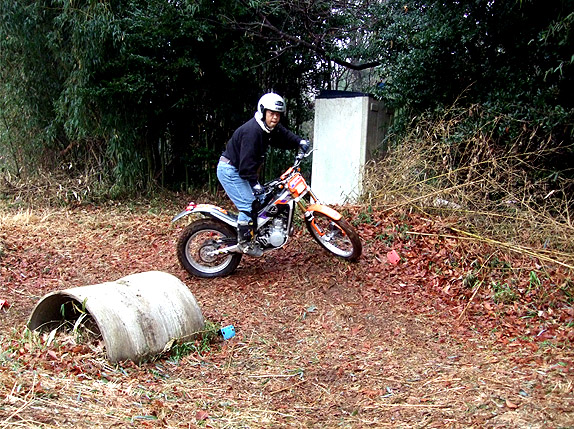 しかしジムカーナにハマっていくうちに、バランス感覚の大切さを痛感し、白バイ乗りも技術向上の為にトライアルをやっている事を知ると、益々「一度はやってみたいなぁ〜」と思っていた訳だ。